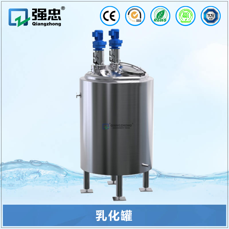 乳化罐是将一种或多种物料(水溶性固相、液相或胶状物等)溶于另一种液相,并使其水合成为相对稳定的乳化液。 乳化罐的均质搅拌器,可与中心叶片搅拌,刮壁搅拌等配合使用,组合成最佳的搅拌方式;罐体采用立式圆罐体,可制作成蜂窝夹套、盘管夹套或整体夹套,可加热,冷却;罐底可采用斜度,便于放空;不锈钢的材质采用316L 或304 制作。